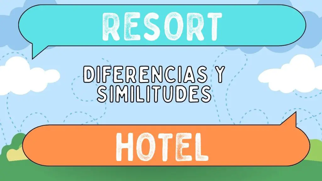 Ambas palabras se refieren a un lugar para alojarse por vacaciones o viajes. Un resort, generalmente, se ubica en zonas turísticas naturales y ofrece más servicios adicionales que un hotel común, tales como deportes acuáticos, piscinas, spa y campos de golf. Por su parte, un hotel, es una estructura diseñada para albergar personas que viajan temporalmente; normalmente cuenta con habitaciones equipadas con camas y baño privado. Los dos tipos de hospedaje ofrecen desayuno gratuito a sus huéspedes y servicio de limpieza diario durante la estancia. La principal diferencia entre los dos se encuentra en el precio: los resorts son más caros debido a la variedad de actividades disponibles en ellos; sin embargo hay muchos hoteles económicos ideales para aquellas personas que no requieran tanto lujo ni detallismo extra.